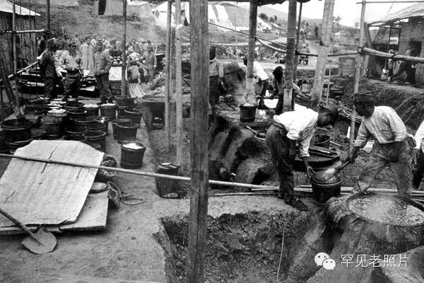 图为1945年9月,南京龙潭集中营中的日军起火做饭。