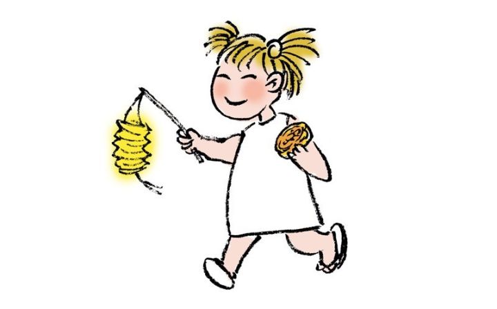 小时候,会左手拎着灯笼,右手拿着月饼和小伙伴们在大街上游荡,笑得很开心。