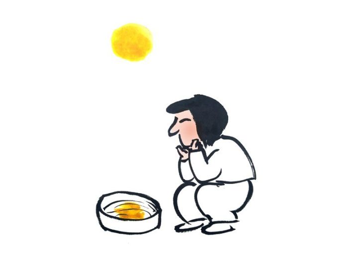 八月十五晩从吃完晚饭开始,就用一只碗装满水,然后用一根针平放在水上(要浮出水面不能沉),睇着月亮照着针的倒影,等着月亮与针与倒影成同一直线。