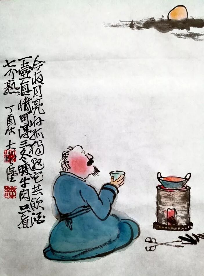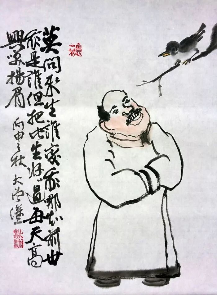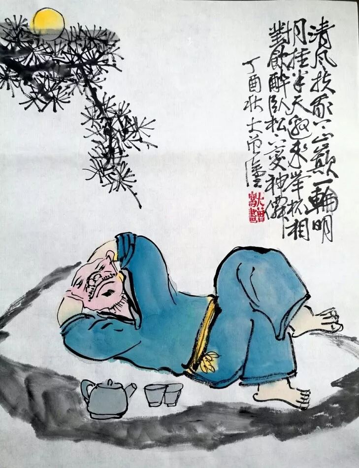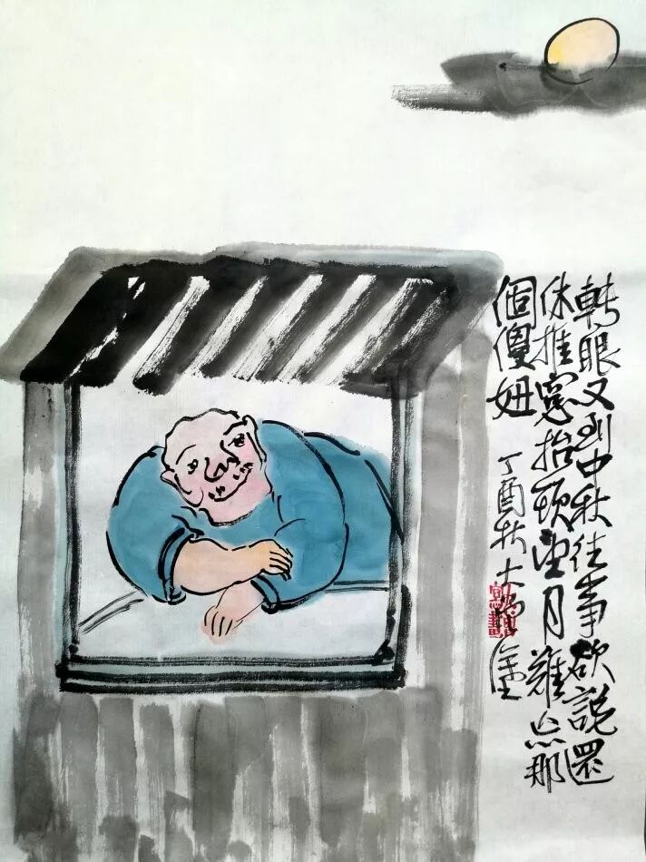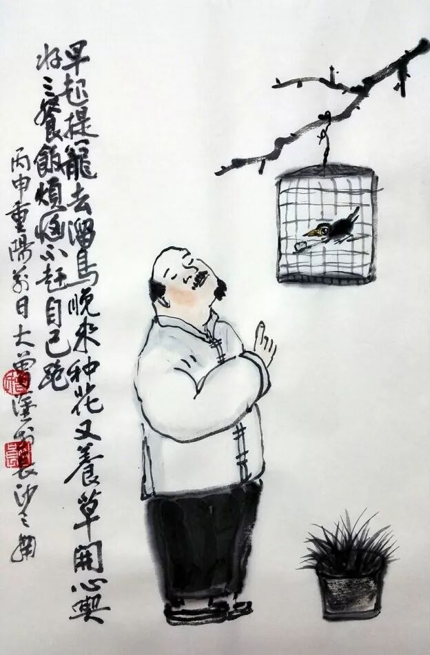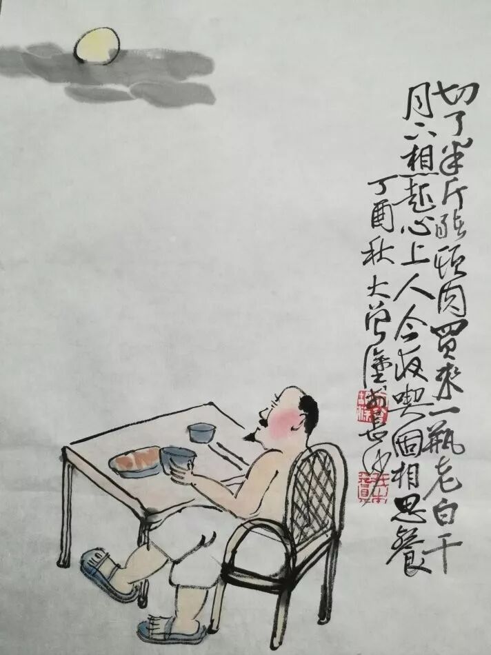 他的画,寥寥几笔,把传统笔墨与现代元素巧妙结合在了一起。与画面相配的一首首率性而肆意调侃的打油诗,读来令人称快!