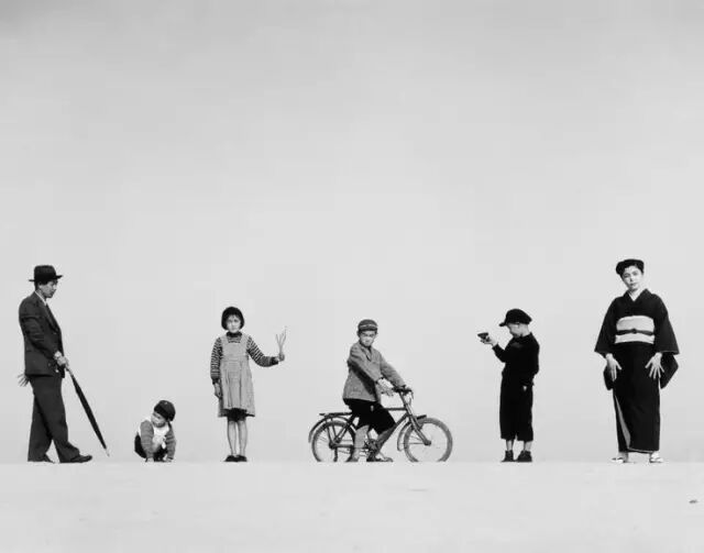 1949年,日本,爸爸妈妈和孩子。植田正治/摄。