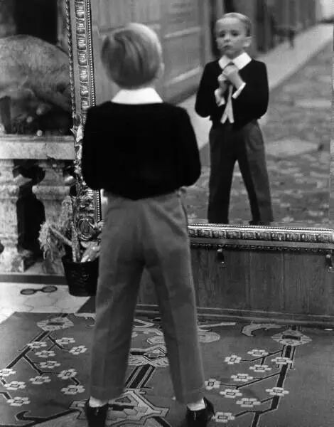 1931年,瑞士圣莫里茨市,镜中的孩子。阿尔弗雷德·艾森斯塔特/摄。