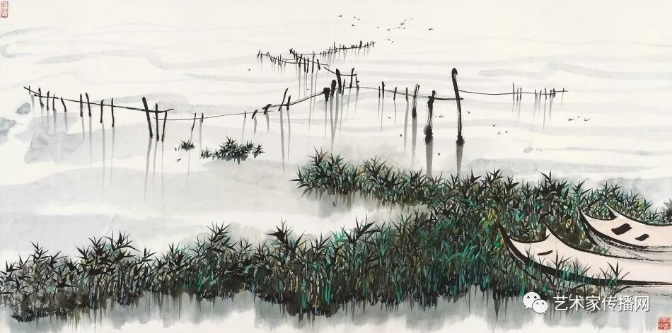吴冠中说从一开始就喜欢梵高,一见就喜欢,在法国的时候,也是喜欢“强烈的东西”,一回来以后,都走不通,没有办法。他说得很直接,“要生存,还要我的艺术能够发展,因此我就找秀丽的办法。用水彩画,抒情的,因为这样的东西轻松愉快,大家能接受,非常受欢迎,那么这样就推着我向这边走,就是说怎么样能与人民结合,他也能够喜欢,但我也不说假话。”