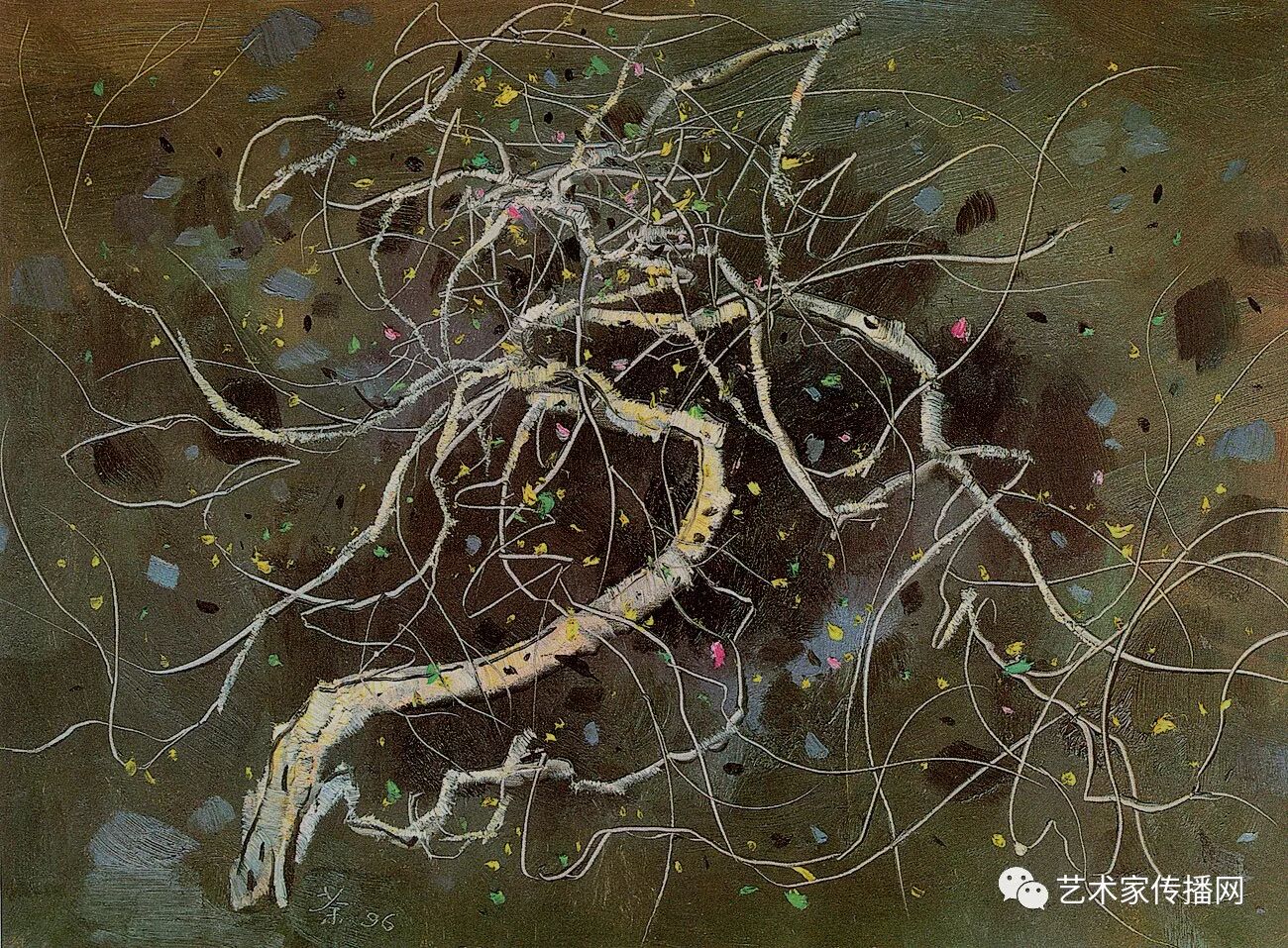 吴冠中-点线迎春-54×73-布面油彩-1996