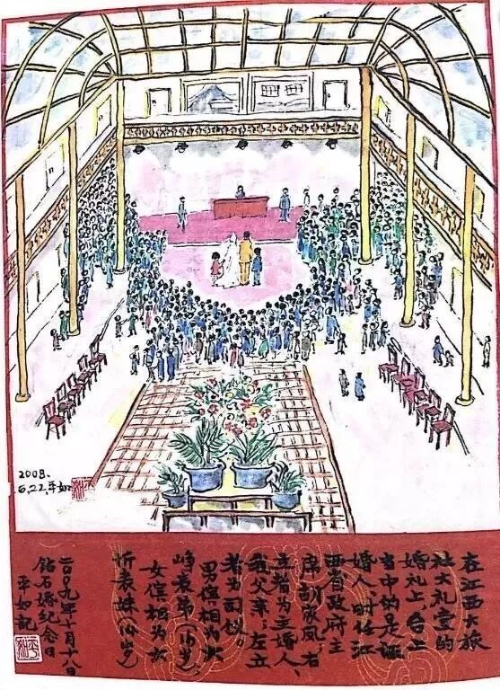 回家后又画出了当年两人结婚时的场景,在这个岁数,曾经每一处细节都不曾遗忘。
