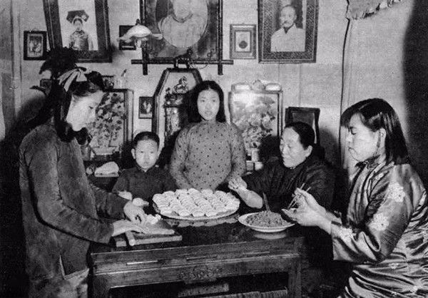 1942年,画家齐白石与家人。海达·莫理循/摄。