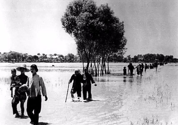 1938年6月,国民党掘开黄河花园口大堤抵抗日军进攻,黄泛区一片水泽,灾民成群结队逃难。