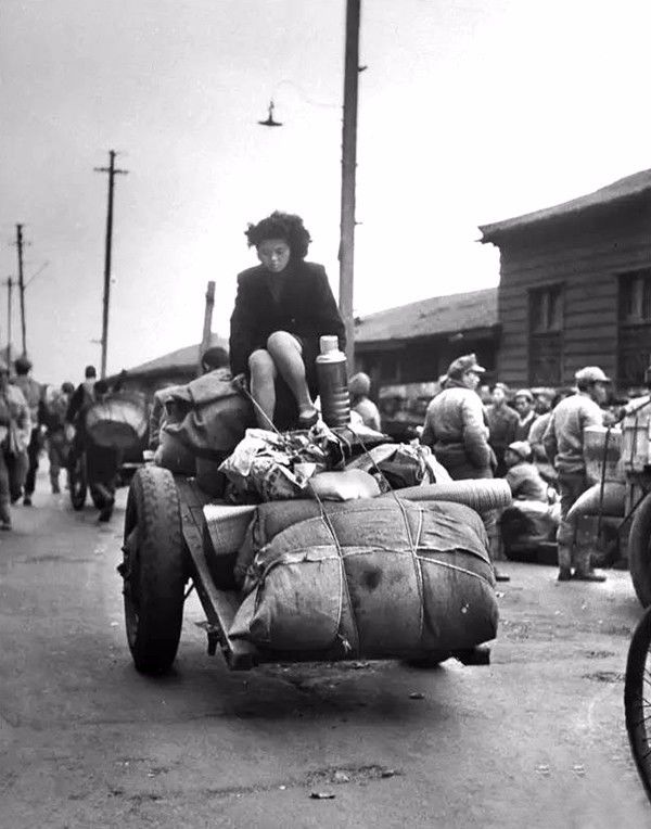 1945年,上海,8年抗战结束后流落街头的难民父子。