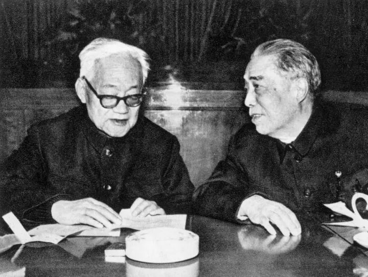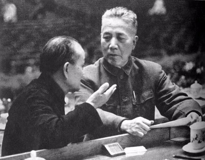 1979年,周扬与胡乔木在文代会上。一年之后,在文革中都受到批判的两个人物,因“人道主义异化问题”而分道扬镳。