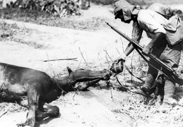 1938年,一个满脸沮丧的日本兵携带着在中国战死的日军士兵骨灰盒。