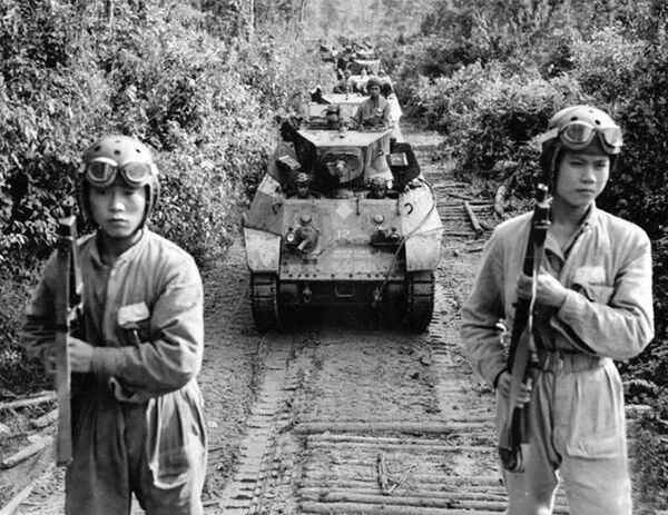 1944年,中国军队在缅甸的机械化部队。该远征军部队配备美国轻型坦克M3A3。