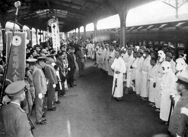 1937年,日本东京火车站,欢迎受伤的日本士兵归国。