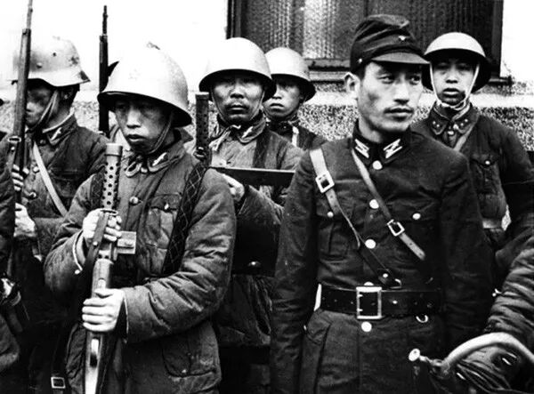 中国军队投敌的汉奸部队。二战结束时汉奸部队的人数已经达到1118000人。