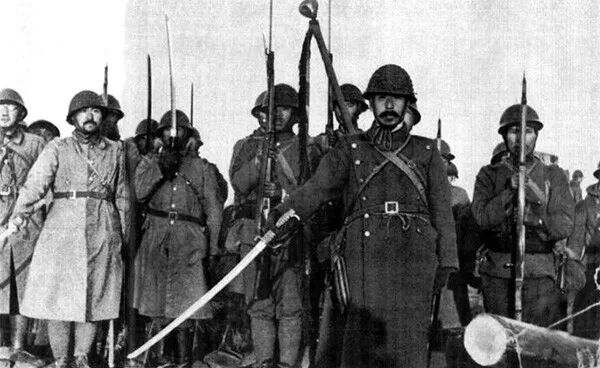 1937年,在中国南京城的日本海军陆战队举行仪式纪念他们阵亡的士兵。