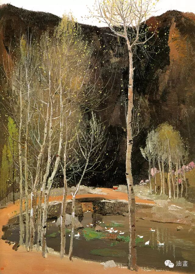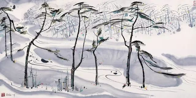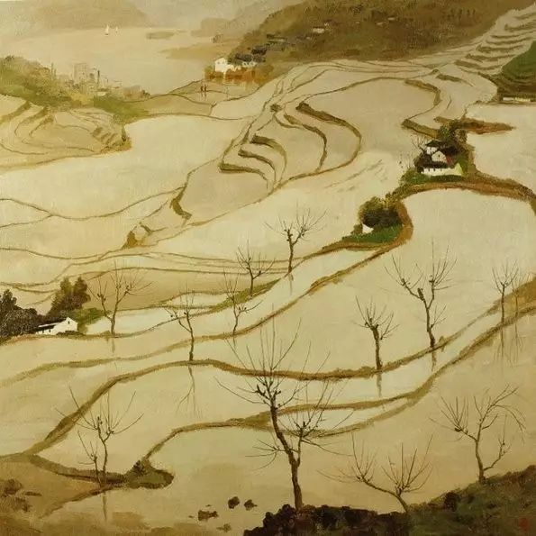 吴冠中在50~70年代,致力于风景油画创作,并进行油画民族化的探索。他力图把欧洲油画描绘自然的直观生动性、油画色彩的丰富细腻性与中国传统艺术精神、审美理想融合到一起。