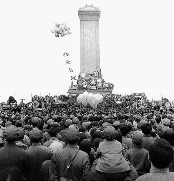 1976年清明节,天安门广场,怀念周总理。王文澜/摄。