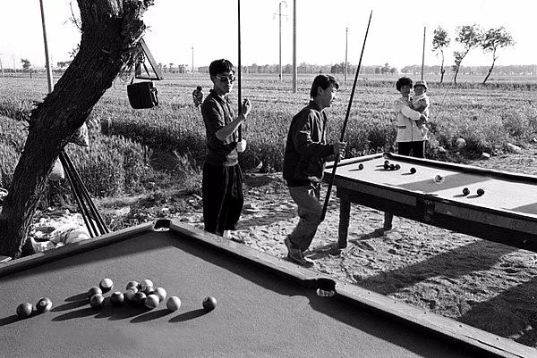 1996年,山东蓬莱,打台球。王文澜/摄。