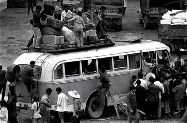 1985年,重庆大足,拥挤的客车。王文澜/摄。