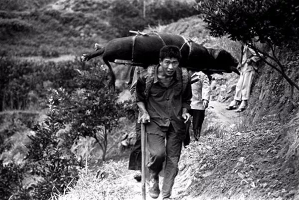 1982年,湖北省西陵峡,背猪。王文澜/摄。