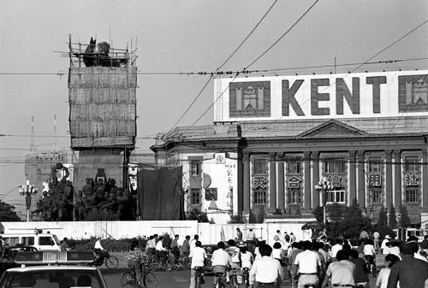 1986年,天安门金水桥,时装秀。王文澜/摄。