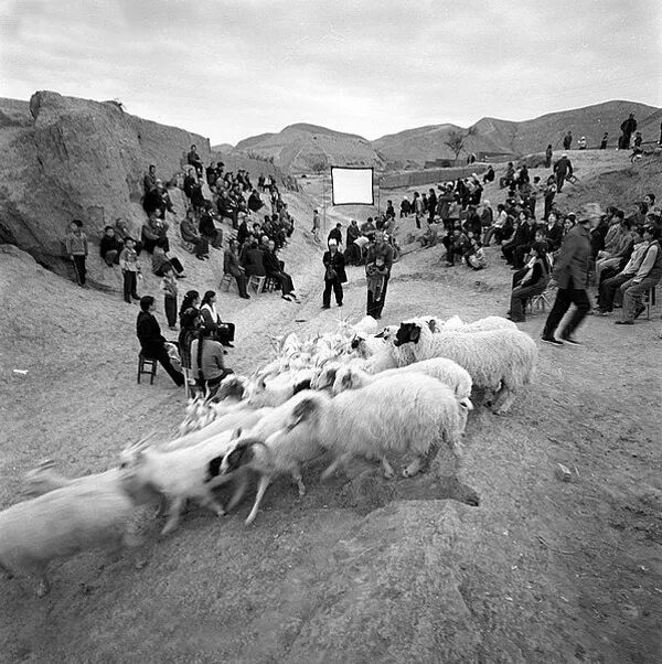 2002年,宁夏海原,露天电影即将放映。王文澜/摄。