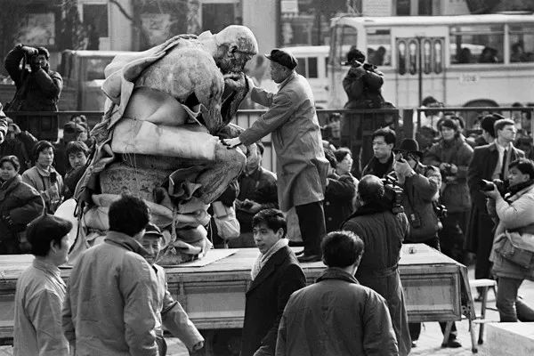 1993年,北京,罗丹的思想者塑像运抵中国美术馆。王文澜/摄。