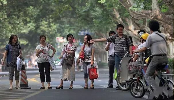 6月8日下午,高考英语听力考试。紧挨着南京市九中高考考点的道路上,考生家长排成一排,堵住马路,指挥过往的自行车、电动车绕道而行,以免噪音影响考生的考试。