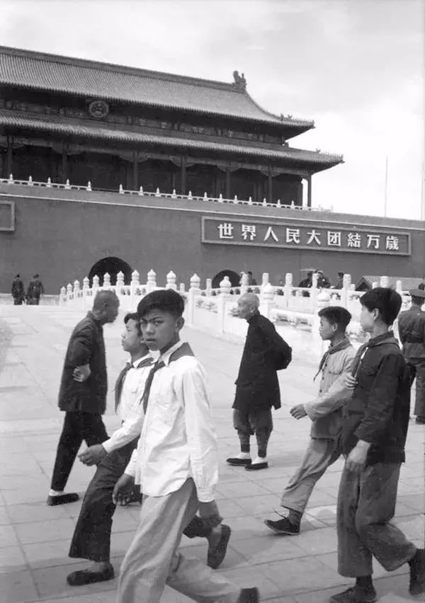 1956年,北京,天安门前的少先队员。汤姆·哈金斯/摄。