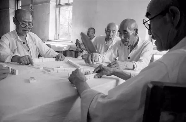 1956年,矿工养老院里的老人们打麻将。汤姆·哈金斯/摄。