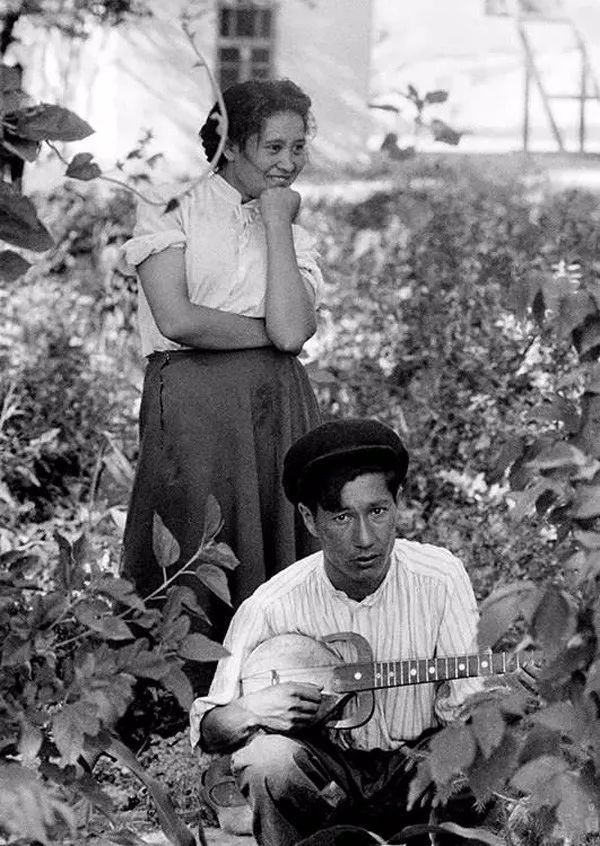 1956年7月,乌鲁木齐,维吾尔族音乐家和女孩。汤姆·哈金斯/摄。