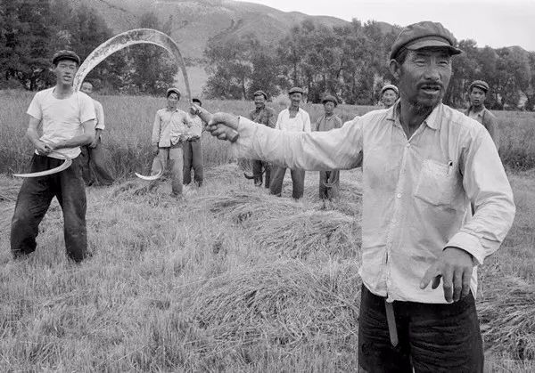 1956年7月,新疆,农民们停止收割,为路边的司机指路。汤姆·哈金斯/摄。
