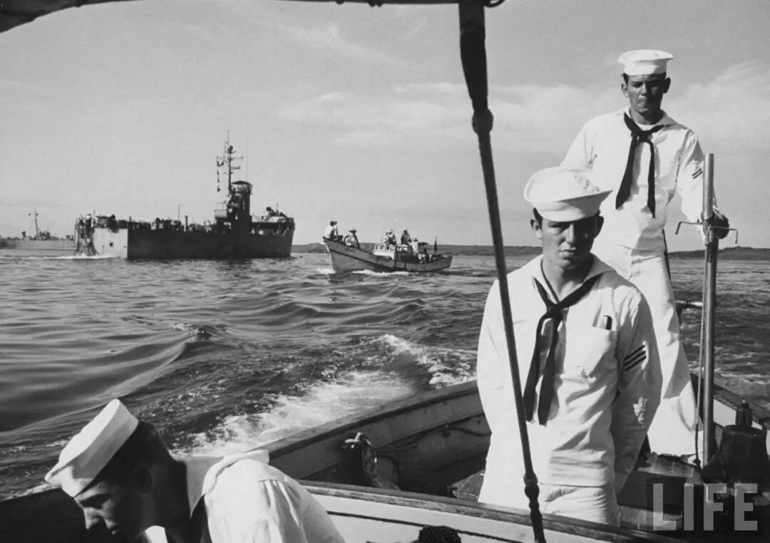 美军水手,自1949年放弃中国大陆的政策后,美国政府决定捍卫台湾,1958年金门炮战后,