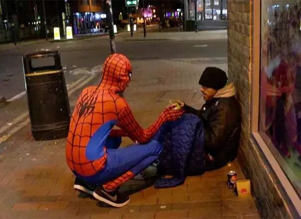 14、这位匿名的“蜘蛛侠”总在夜里为流浪汉送去食物。没有超能力,也可以做英雄。