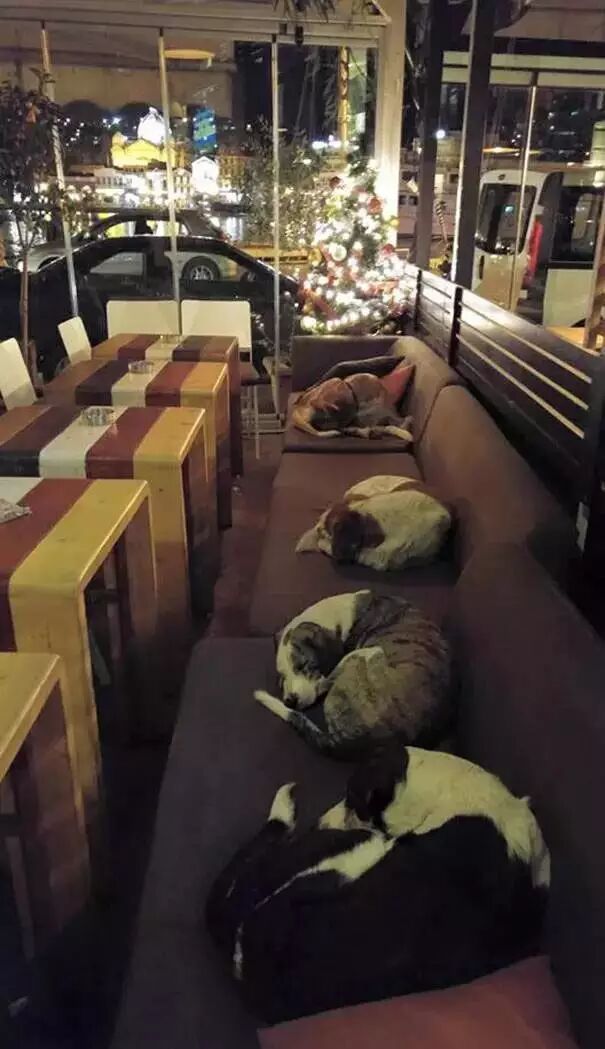 11、这家咖啡店每天晚上打烊以后,都让流浪狗进屋睡觉。