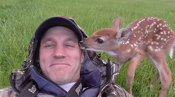 16、这只幼鹿不愿意离开这个救了它的男人。