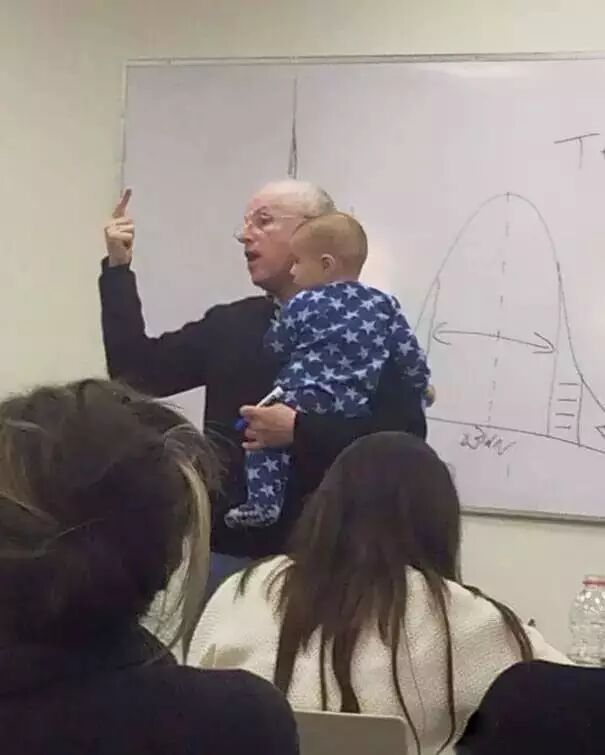 10、一位学生不得已带自己的宝宝来上课,当宝宝哭起来时,上课的教授做出了最好的示范(抱起孩子讲完了这堂课)。