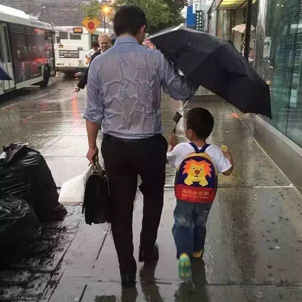17、一位为孩子打伞,自己却淋雨的父亲,用自己的行动诠释“父母”的含义。