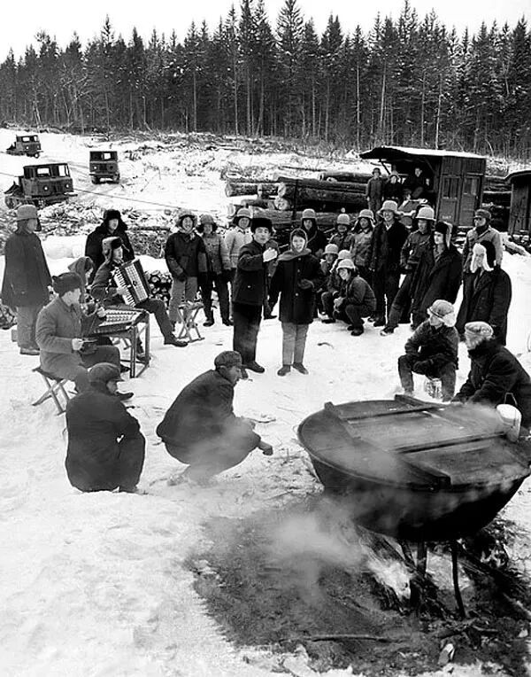 1970年,吉林,临江林业局毛泽东思想文艺宣传队到林场演出。