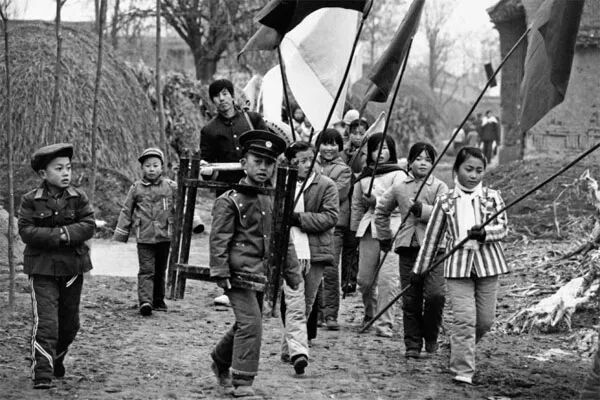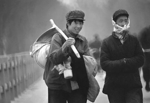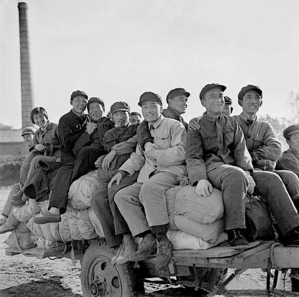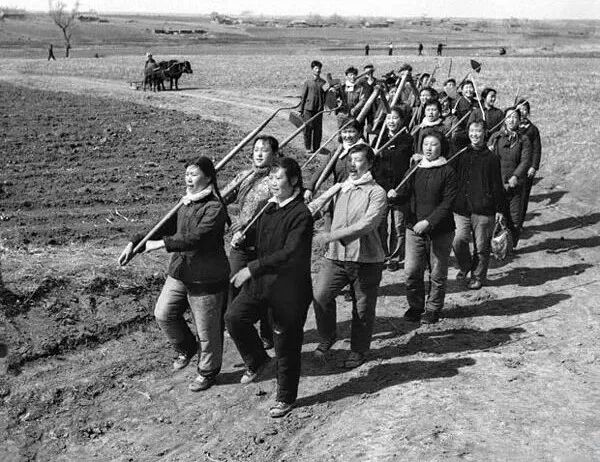 1976年,吉林,“五七”战士奔赴农村进行社会主义路线基本教育。