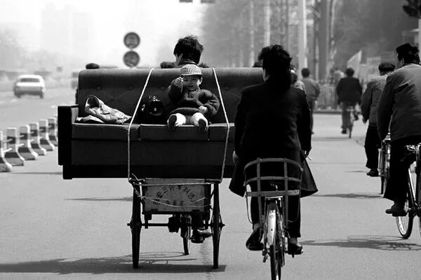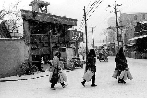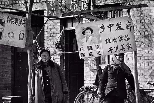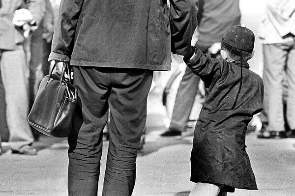 1984年,北京,东长安大街购卖沙发的一家三口人。