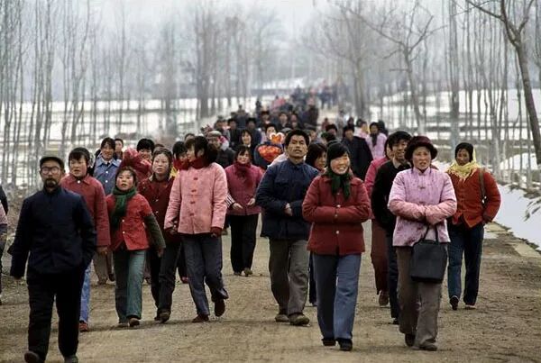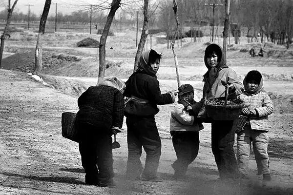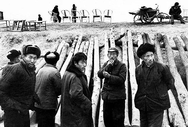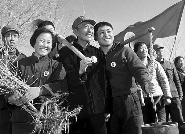 1970年,吉林,铁岭县北京下乡知青在贫协主席带领下共同植树。