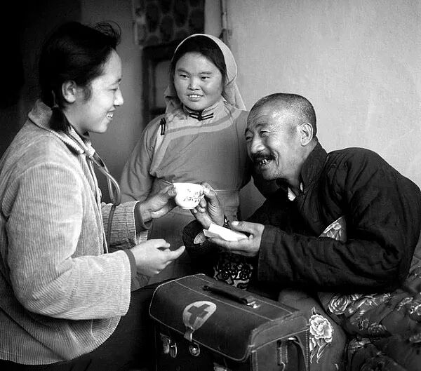 1972年,内蒙古,北京知识青年赤脚医生来到牧民家送医送药。