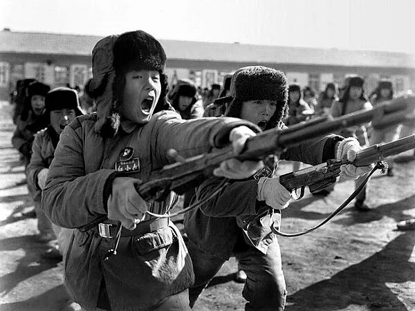 1967年,辽源宁,军事训练中的毛泽东思想红小兵。