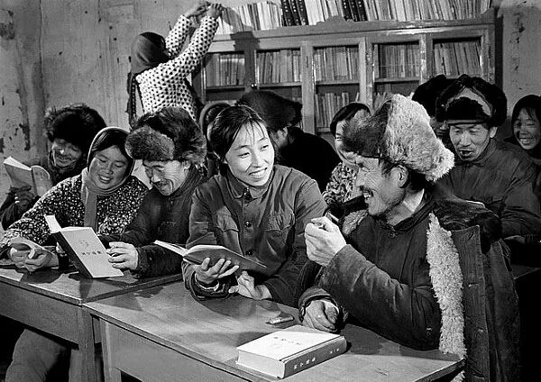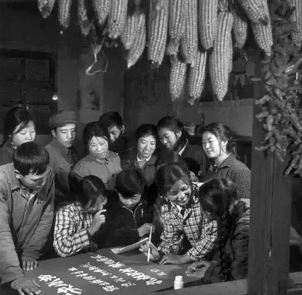 1971年,公社生产队里社员们在认真学习马列主义毛泽东思想。