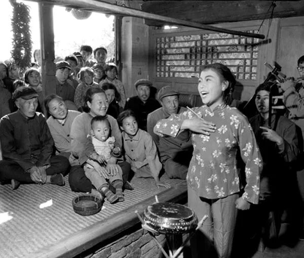 1970年,吉林,毛泽东思想文艺宣传队到贫下中农家里演出革命样板戏片段。