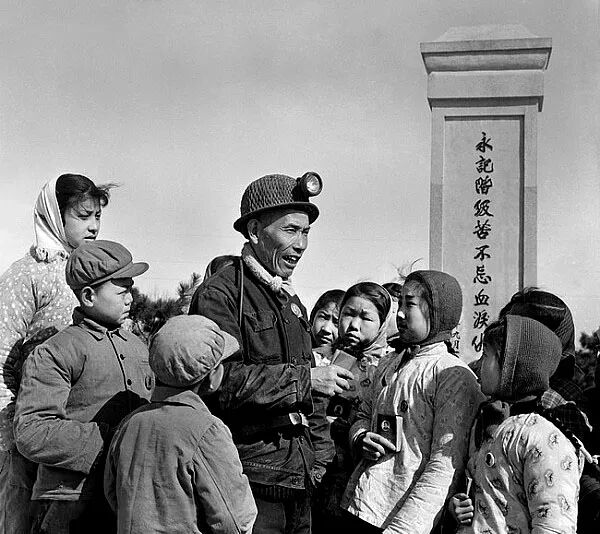 1966年,吉林省辽源市燎原煤矿,老矿工给红小兵上忆苦思甜课。