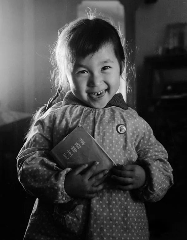 1966年,王姝虹(3岁)爱毛主席,读毛主席的书。
