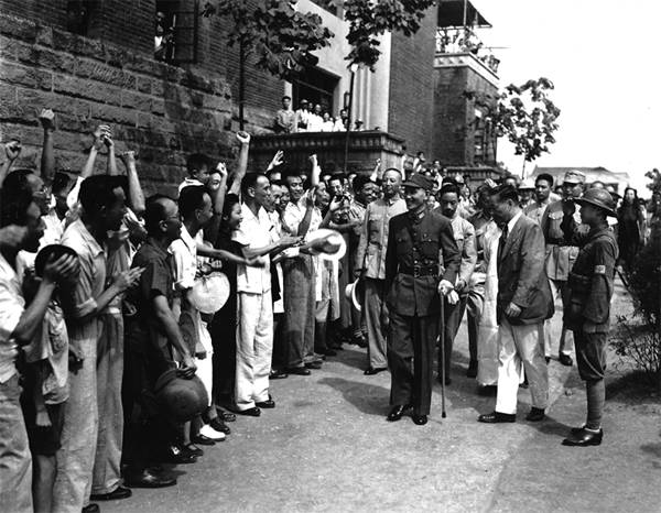 1945年,日本投降后,蒋介石在重庆街头收到人民夹道欢迎。