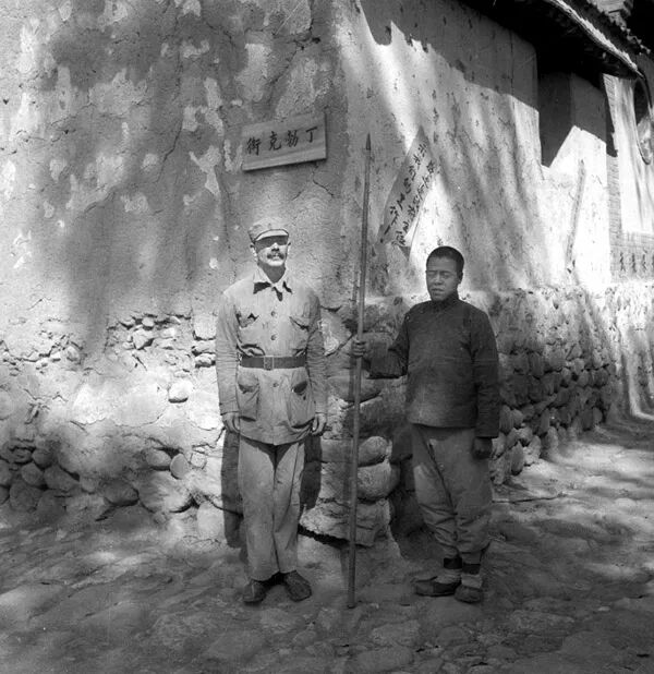 1938年,山西五台县,白求恩与自卫队员。沙飞/摄。