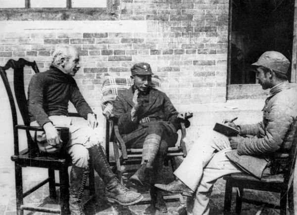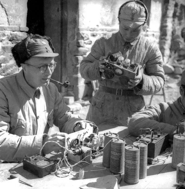1938年,《救亡日报》记者叶文津采访白求恩与聂荣臻。 沙飞/摄。